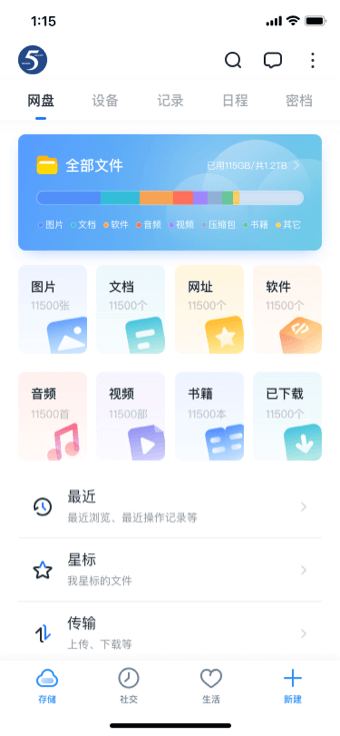 提供文件、通讯录、相册、我听等一系列智能高效的数据存储、记录管理服务。